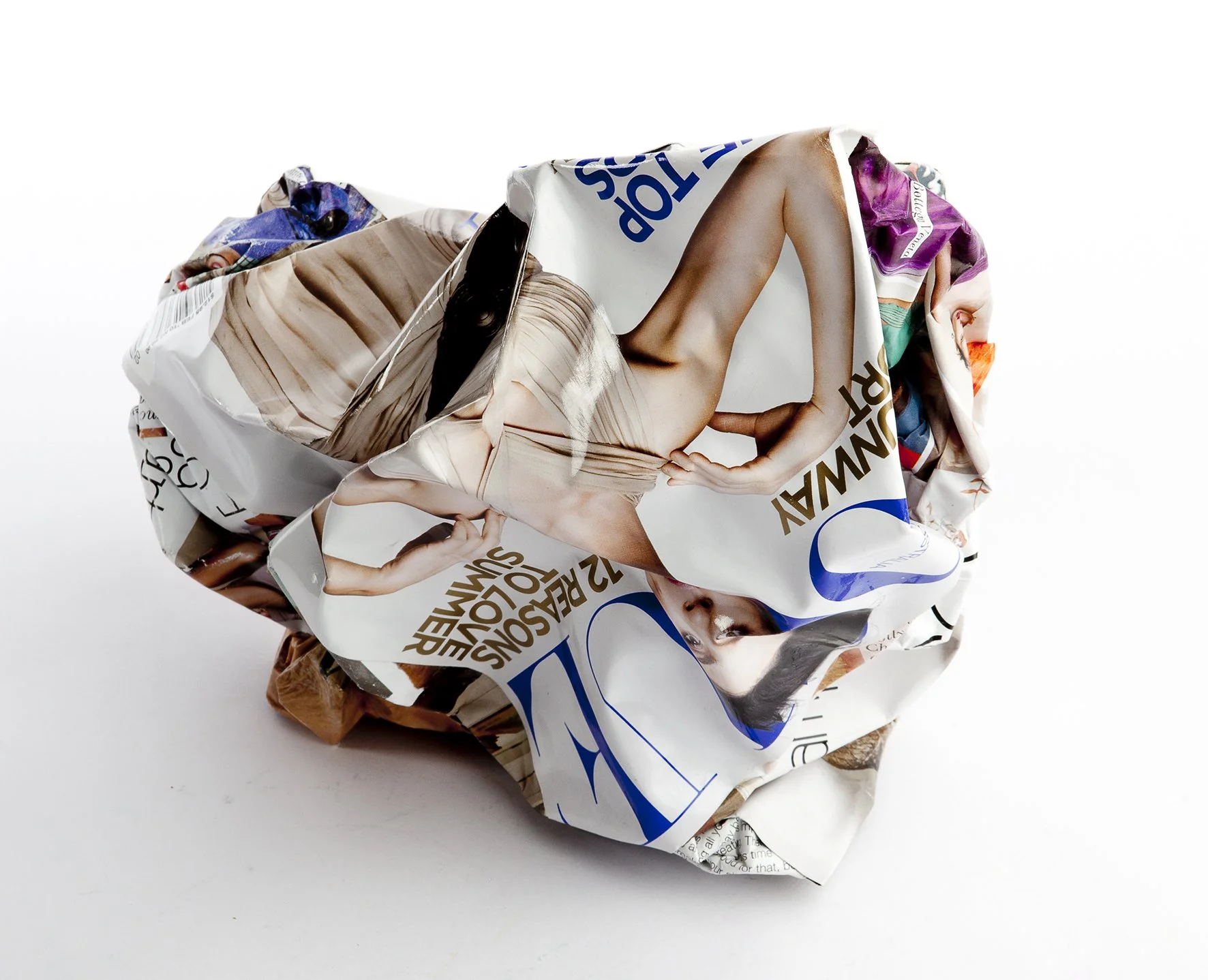 The Giant Accessories borrow and elevate elements from other series, such as the wallpaper sculptures and the Debrocks. The latter are three dimensional structures, mainly formed by compressing entire magazines into geological formations.